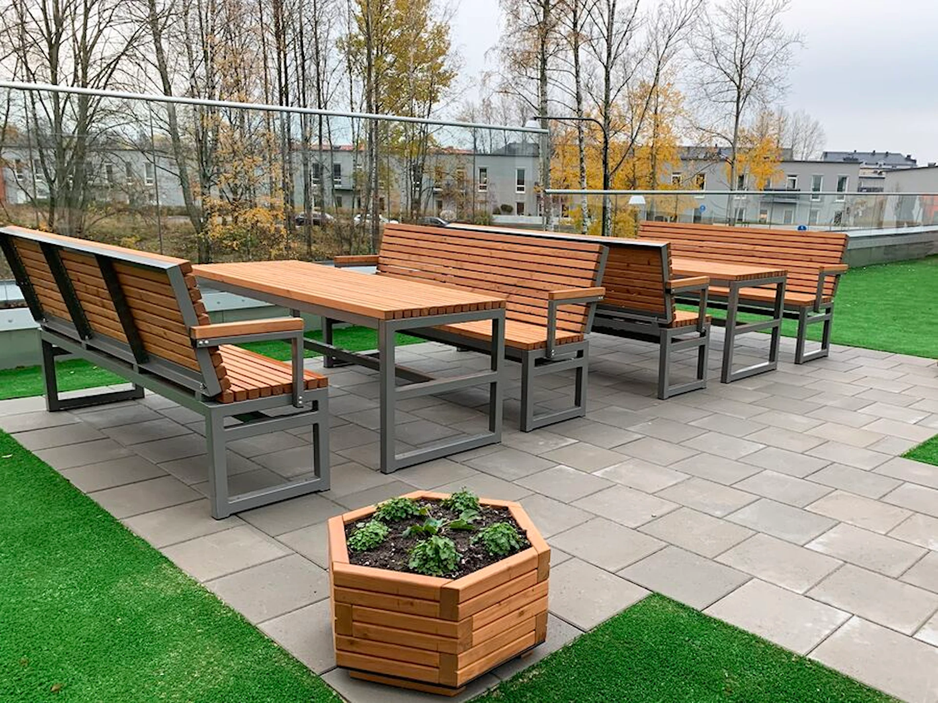 - Tre : Vedlikeholdsfritt. Hvis man vil bevare treets naturlige nye farge kan det oljes eller beises en gang i året eller etter behov.