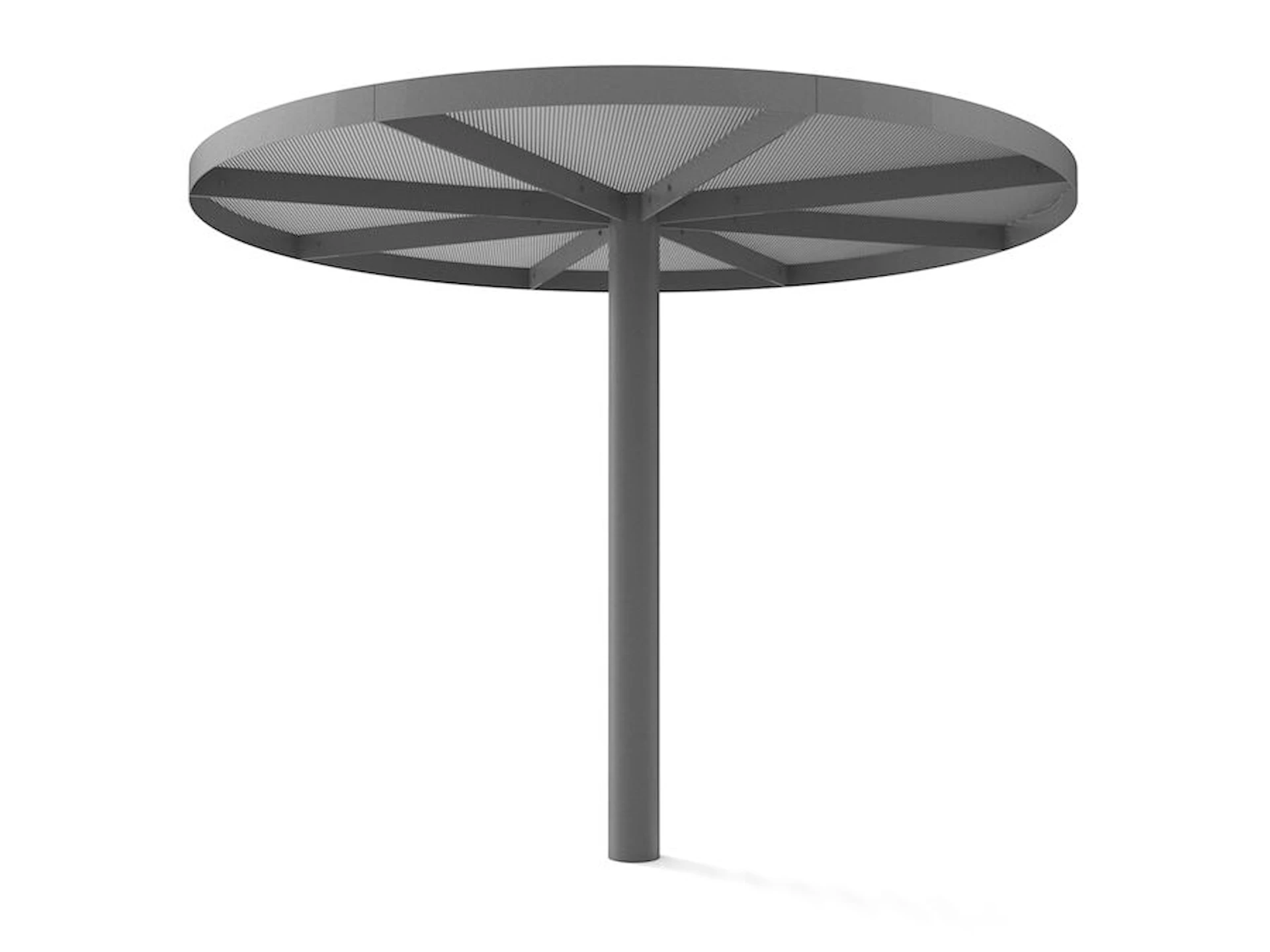 Meum Light Skjermtak er rundt og finnes også i en heldekkende versjon som ikke lar lys eller regn slippe igjennom. Meum Skjermtak støpes ned i bakken og vil stå stødig år etter år.