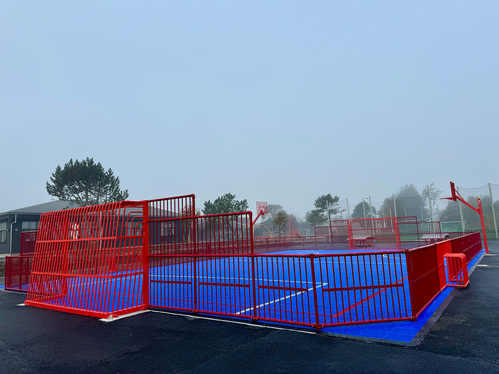 Skolen har fått to ballbinger – det perfekte området for variert fysisk aktivitet. Den ene ballbingen er utstyrt med basketballstativ og minimål, som gjør det mulig å spille flere ulike sporter på samme bane. Blant nykommerne finnes også to Archball multispillbord som byr på morsomme utfordringer, og en fugleredehuske som passer for både lek og avslapning. I tillegg har vi levert kunstgress, sperrenett, gummikuler og andre spennende produkter.