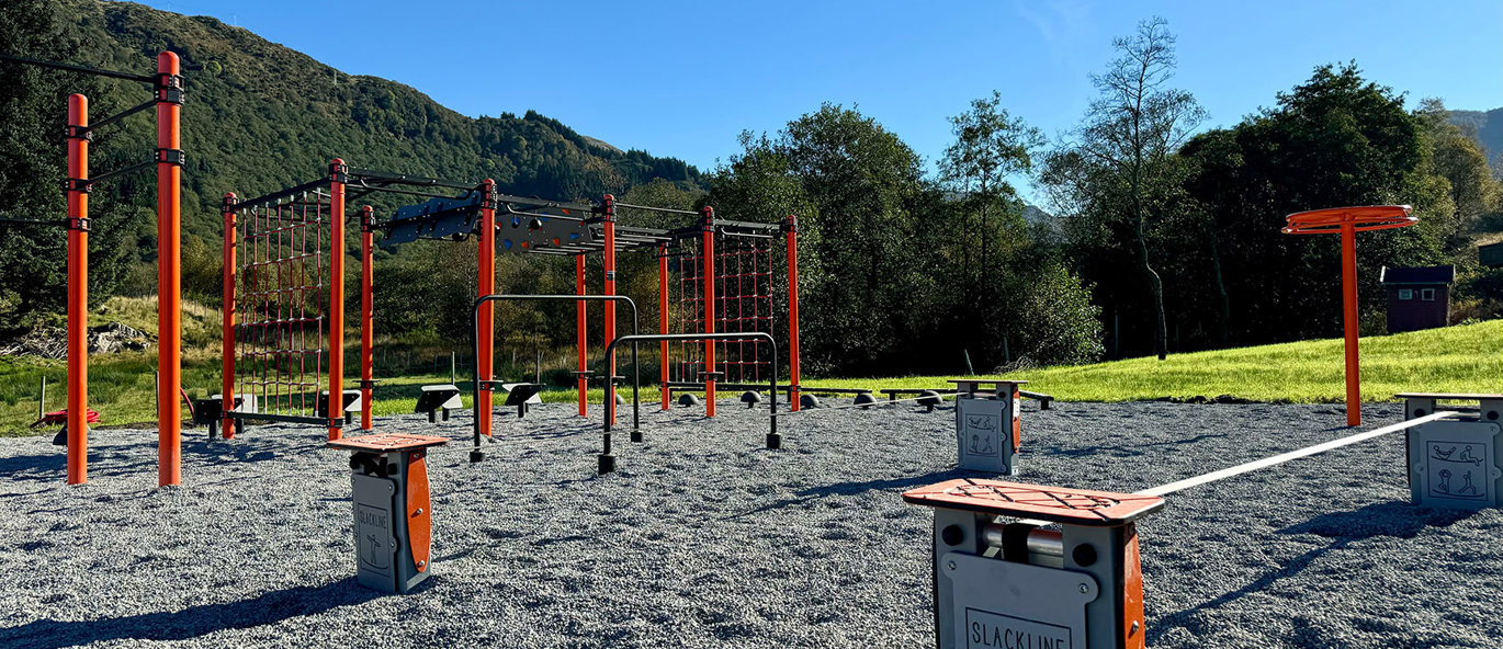 Ninjapark er en inkluderende aktivitetspark tilpasset alle aldre og nivåer, hvor lek, trening og sosialt samvær står i fokus. Med et bredt utvalg aktiviteter som klatring, parkour, balanse, styrke og motorikk, finnes det noe for enhver smak. Parken er tilpasset etter brukergruppen, arealet og spesifikke ønsker fra kunden. Her kan både barn og voksne utforske gleden av bevegelse i trygge omgivelser, noe som bidrar til økt trivsel og aktivitet i lokalmiljøet. Perfekt for skoler og andre møteplasser!