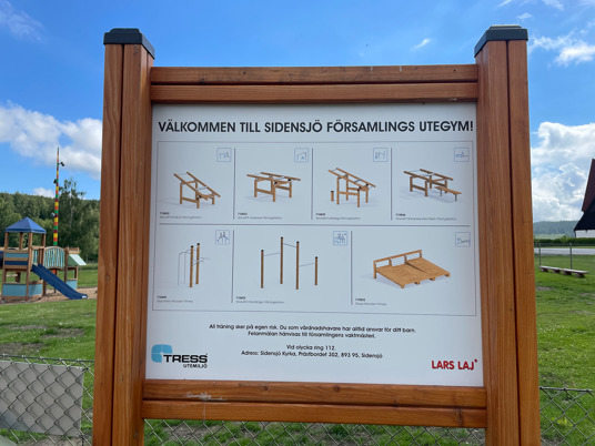 Aktivitetsparken er et stort løft for det lille lokalsamfunnet i Sidensjö. Her finner man en lekeplass for barna, et utegym med syv ulike treningsstasjoner og en koselig uteplass for grilling og sosialt samvær.