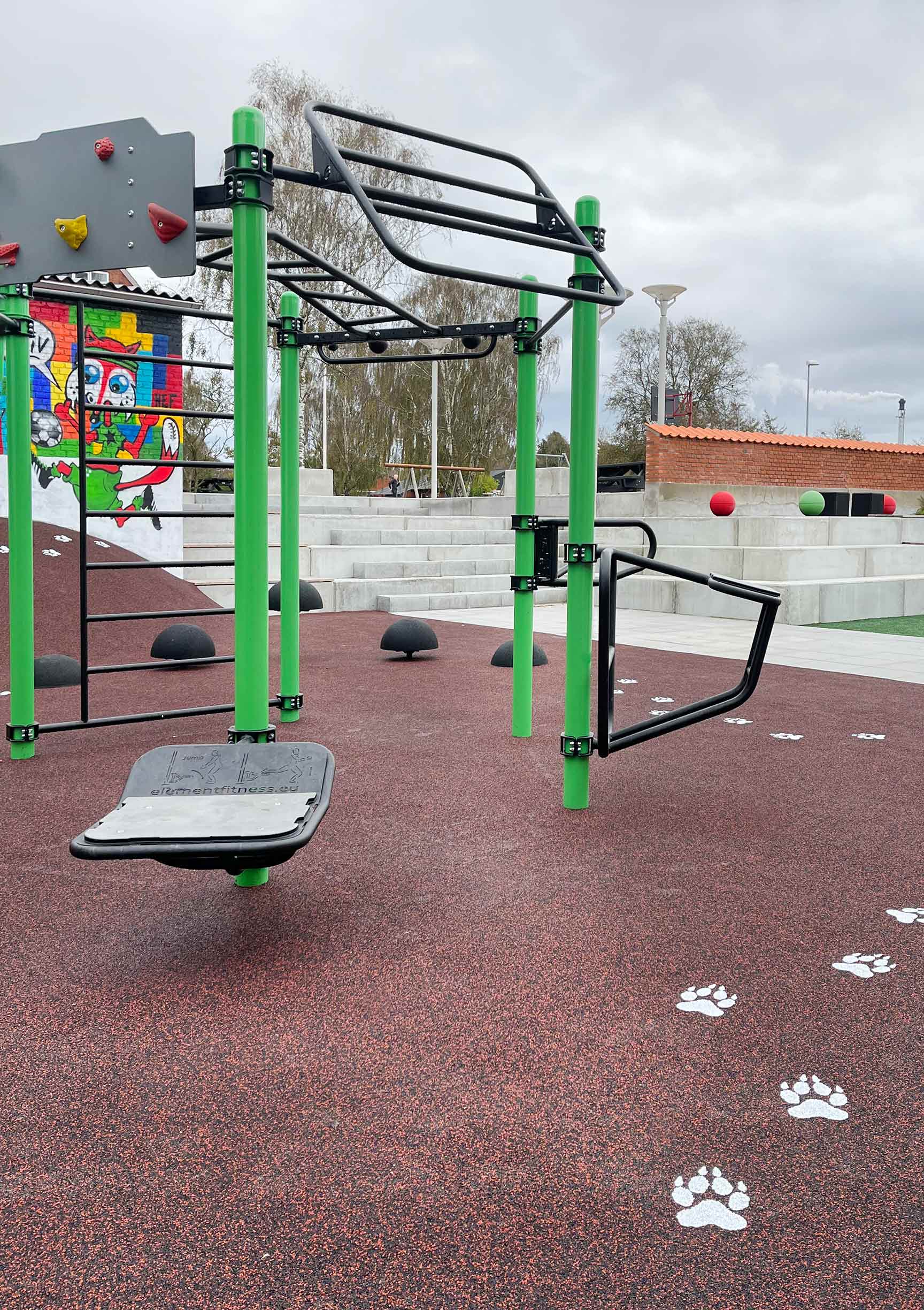 Det nye aktivitetsområdet tilretteleger for flere aldersgrupper og interesser med utegym, trampoliner, område for ballspill og gode sitteplasser.
