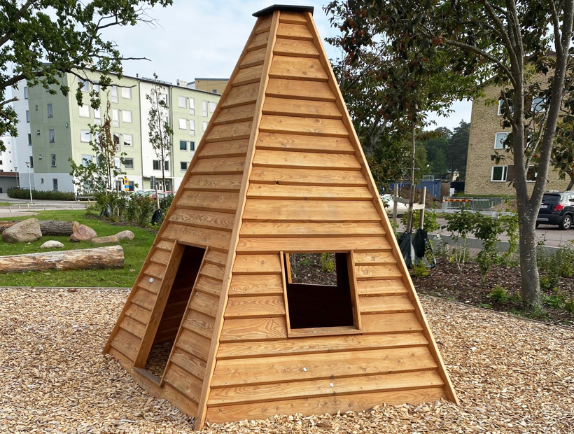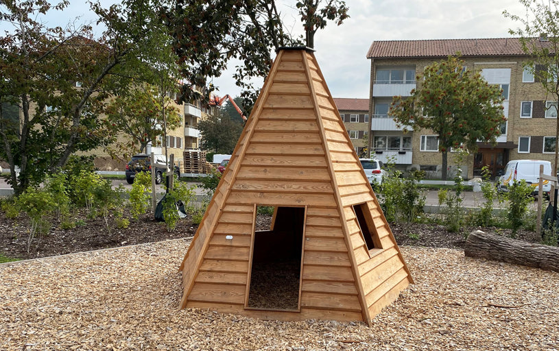 Tipiteltet er et solid lekehus formet som et telt, med dør og to vinduer. Den naturlige utformingen gjør at det passer perfekt i både boligområder og parkmiljøer. Her inviteres det til fantasifull rollelek og morsomme stunder med venner.