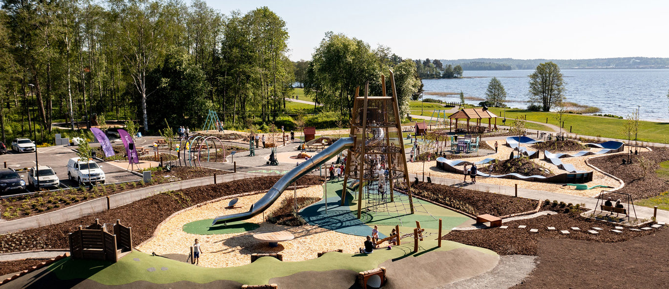 Ønsket var en stor og høy lekeplass i midten av parken. Valget falt på Gigantis Klatretårn, som med sine 9 meter til toppen er en mektig opplevelse. Å klatre hele veien opp til toppen og se utsikten gir en skikkelig wow-følelse! Ta sklien ned og få en kilende følelse i magen!
