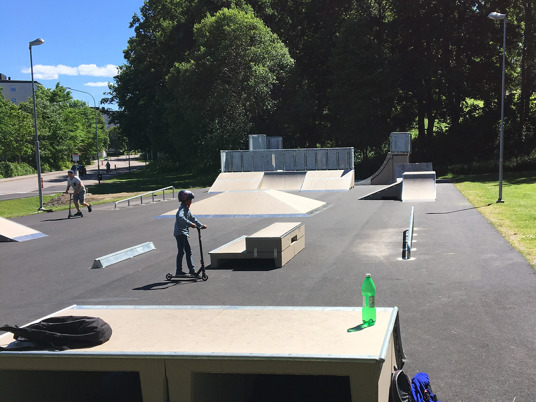 Ta med skateboard, sparkesykkel, sykkel eller rulleskøyter til skateparken! Den ble utviklet i samarbeid med skoleidrettsforeningen Within Games. Skateparken har en ideell beliggenhet ved Alléskolan og inneholder blant annet en miniramp, banks, funbox, quarterpipe og rails.